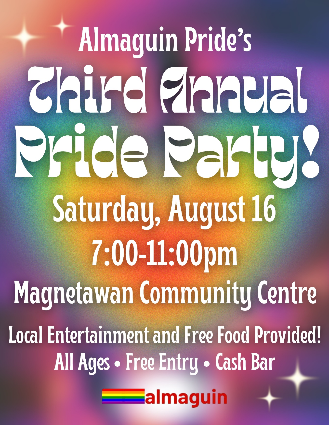 It’s time for Almaguin to show off its Pride! The Almaguin Pride Network is presenting an evening of live entertainment and celebration on Saturday August 16th from 7-11pm at the Magnetawan Community Centre. The 3rd Annual Pride Party is a free, all-ages event featuring music, food and live entertainment. The evening features some local talent with performances that promise to be spectacular!