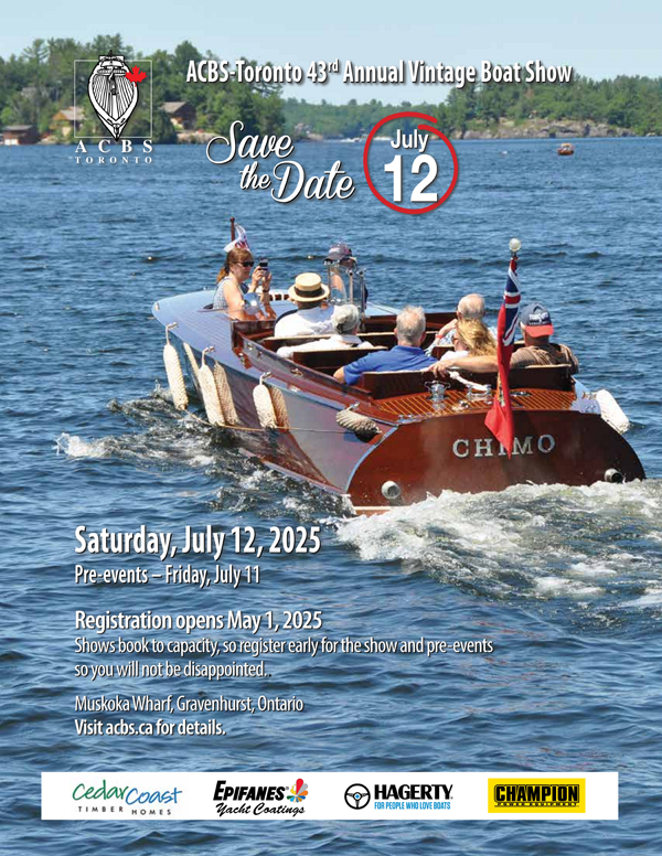 “And save the date, Saturday, July 12, 2025 for the return of the ACBS-Toronto Vintage Boat Show to the Muskoka Wharf in Gravenhurst” added Mike Gridley.