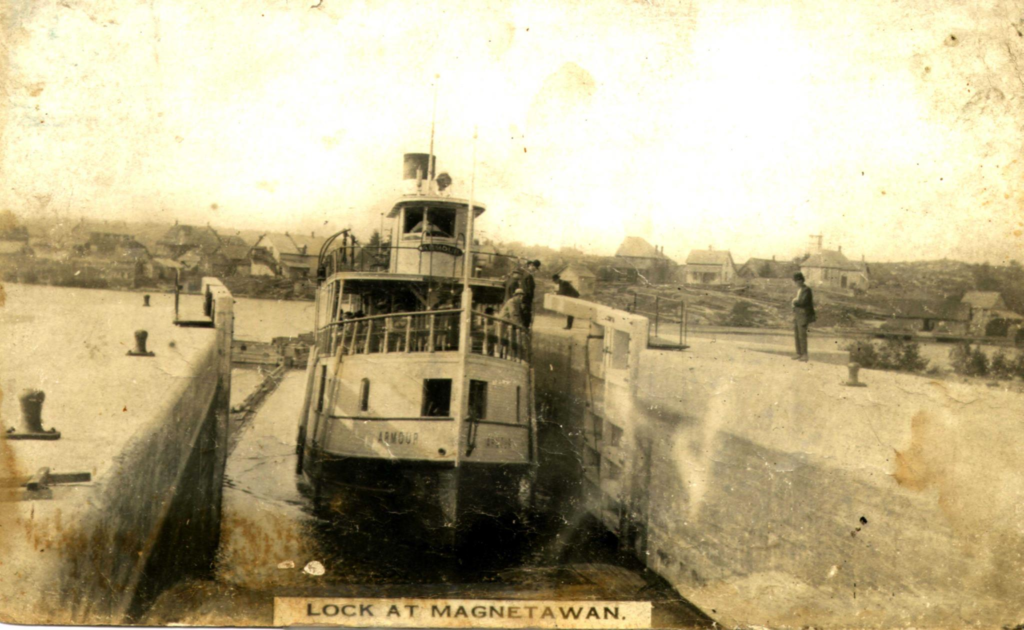 Rising in Algonquin Park and running 100 miles west before emptying into Georgian Bay, the Magnetawan (originally spelled Maganetawan) River was a highway of sorts for Parry Sound District with steamships running to and from the railhead at Burk’s Falls.