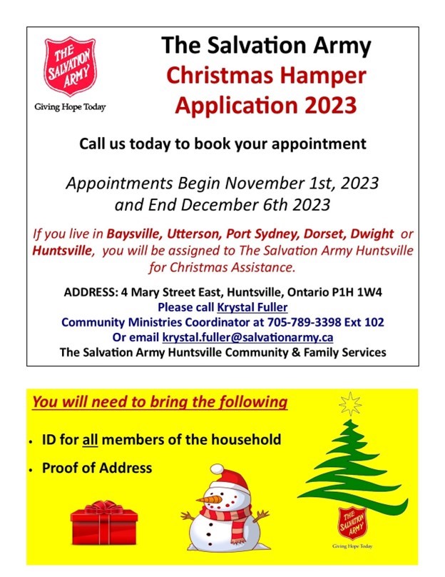 Bracebridge Fire Department and Muskoka Paramedic Services will be canvassing neighborhoods in the urban areas of Bracebridge on Monday, December 4 from 6 to 9 p.m. to collect non-perishable food items in support of the Salvation Army South Muskoka Food Bank.