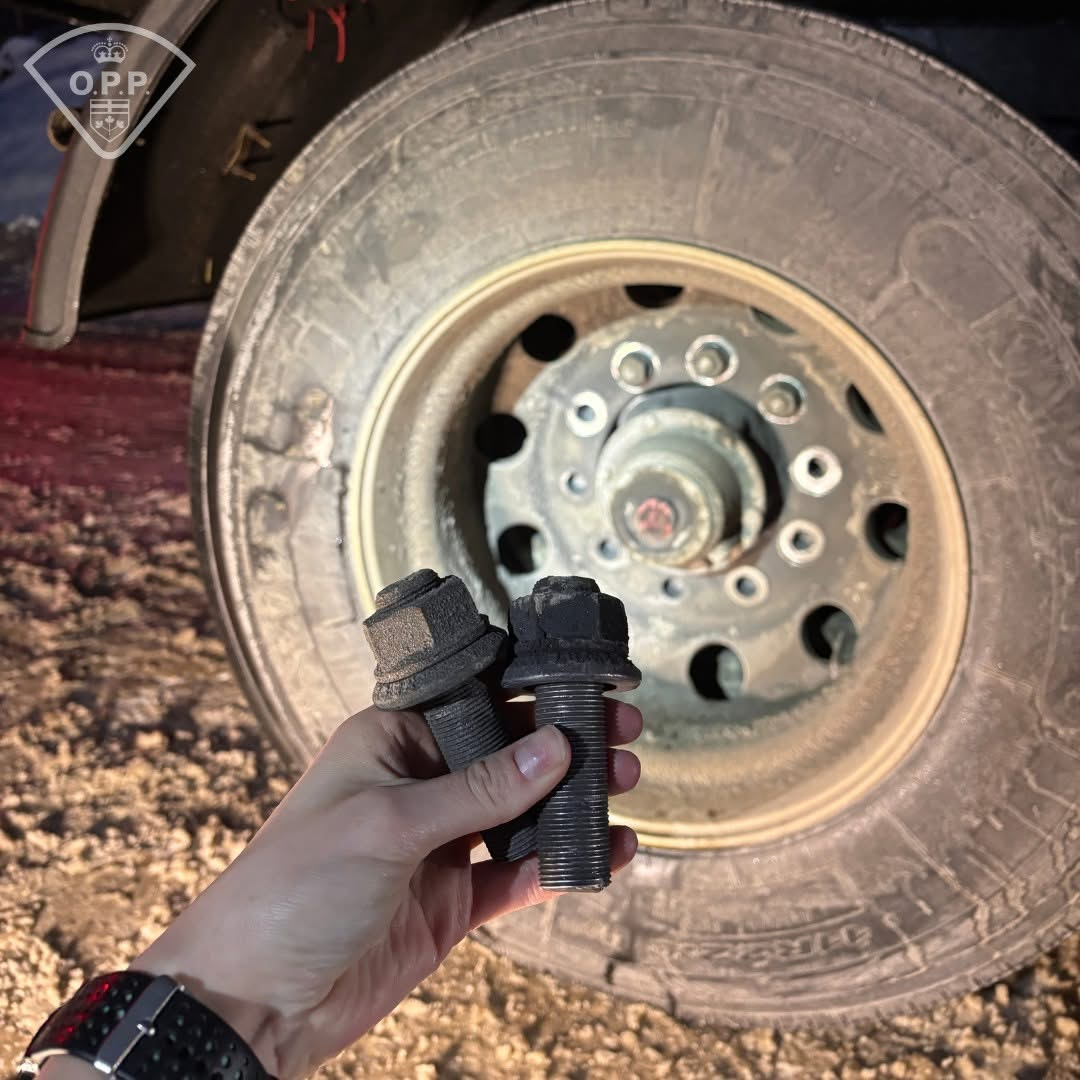 On Tuesday, February 3, 2026, at approximately 3:45 p.m., an officer with the North Bay OPP observed a tractor‑trailer travelling 113 km/h east of Mattawa on Highway 17. During the stop, the officer noticed loose and missing wheel fasteners on the vehicle’s fourth axle, classified as a major defect and an imminent wheel‑off hazard.