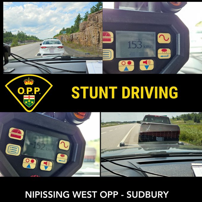 This past long weekend along with other numerous traffic violations issued by the OPP, two young drivers were charged with stunt driving on Hwy. 69. Both drivers, a 21 y/o from Sudbury and a 22 y/o from Bracebridge received a 30-day driver’s licence suspension, and the vehicles were impounded for 14-days.