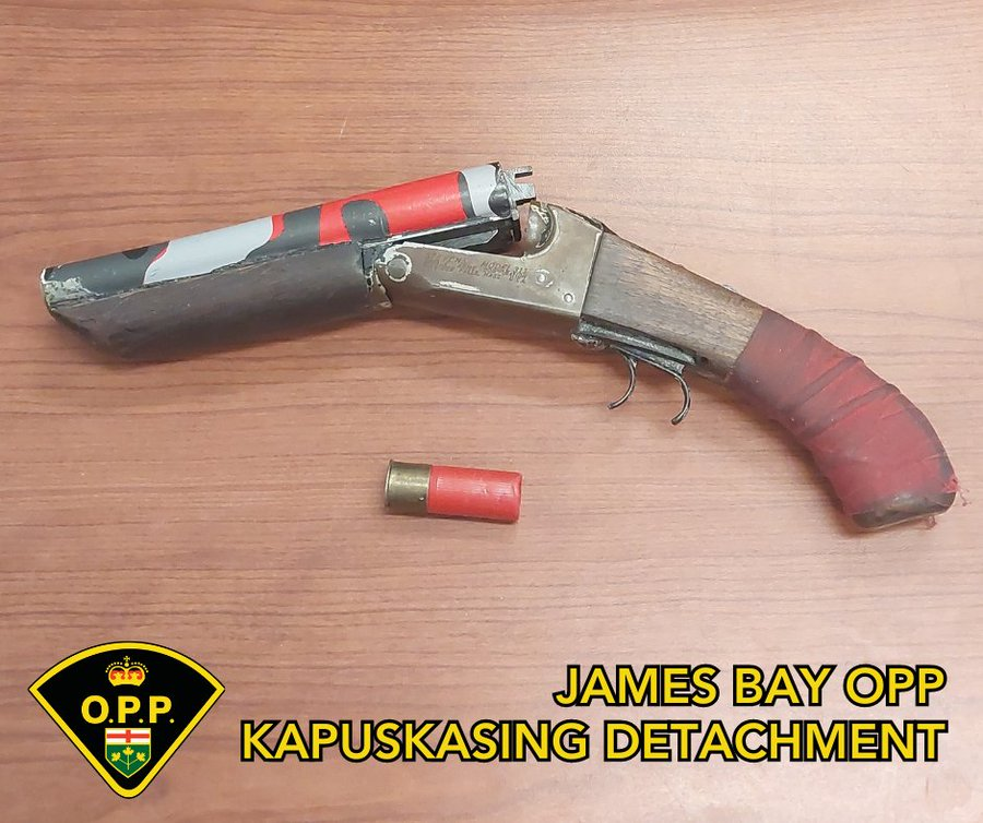 On September 11, 2024, at approximately 2:00 p.m., the James Bay OPP responded to a call reporting a prohibited weapon at a residence on Cedar Street in Kapuskasing. A search warrant was executed at that residence on Cedar Street, and police located one sawed-off shotgun, along with a 12-gauge cartridge.