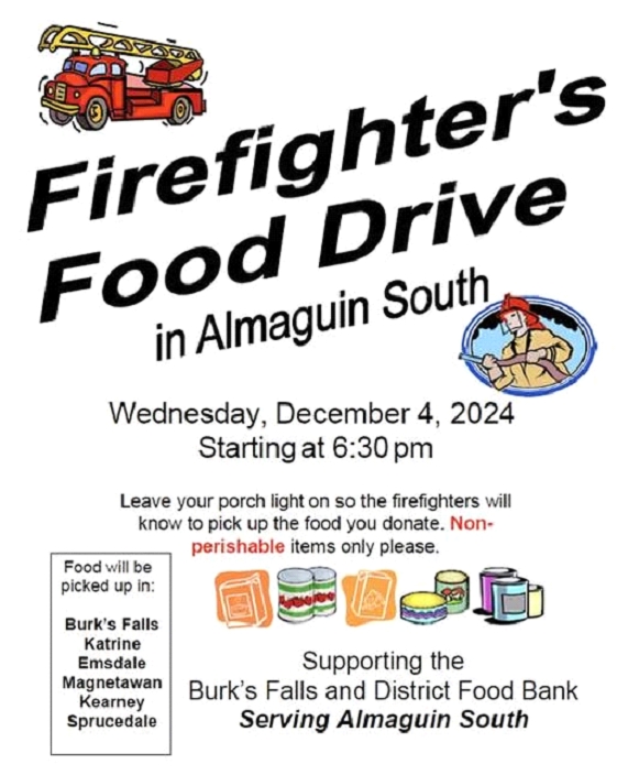 *** Note the Firefighters Food Drive in Almaguin is this Wednesday