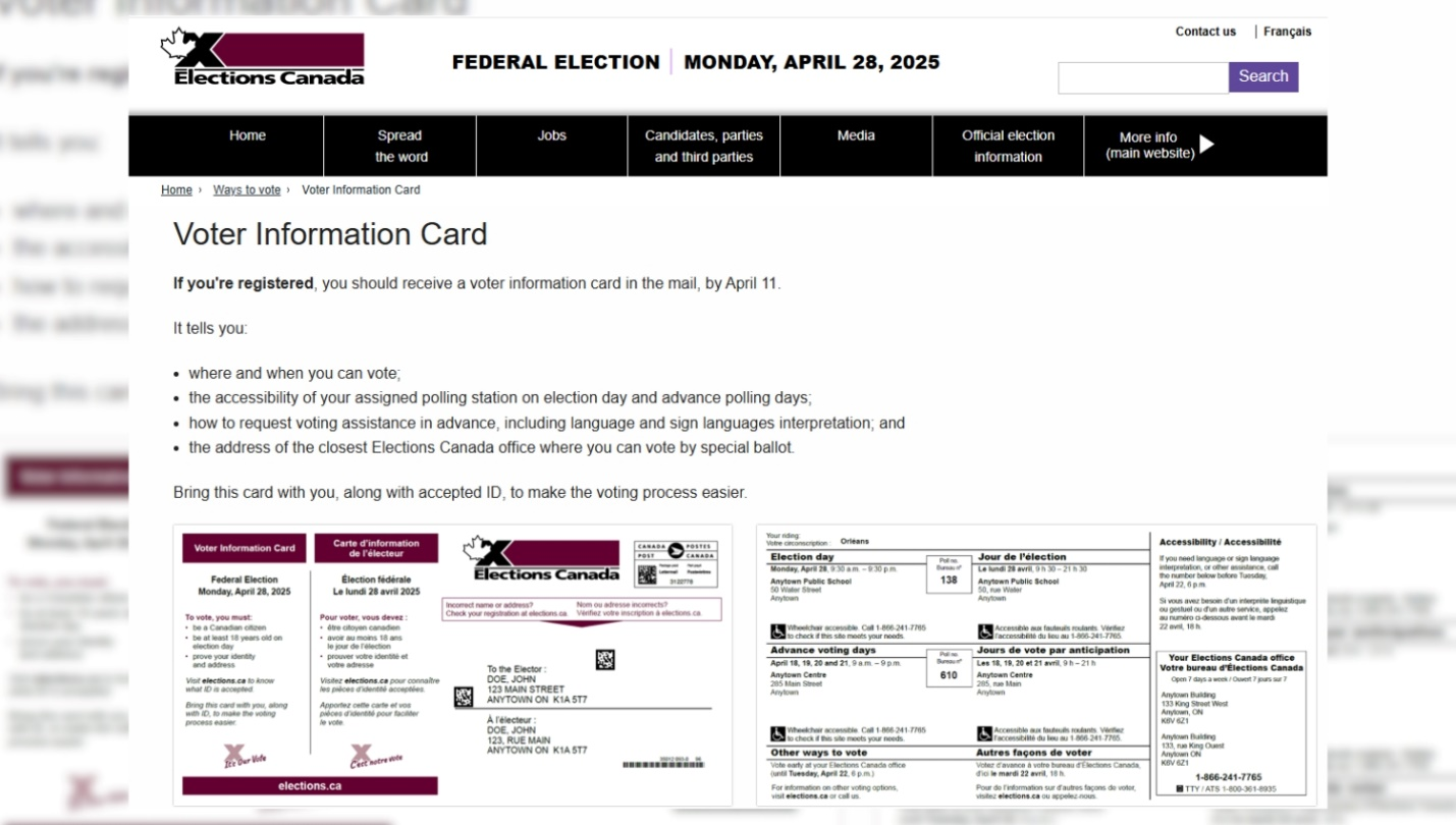 The voter ID could be one of the pieces of ID used to confirm who you are such as a driver’s licence, or any other card issued by a Canadian government (federal, provincial/territorial or local) with your photo, name and current address.
