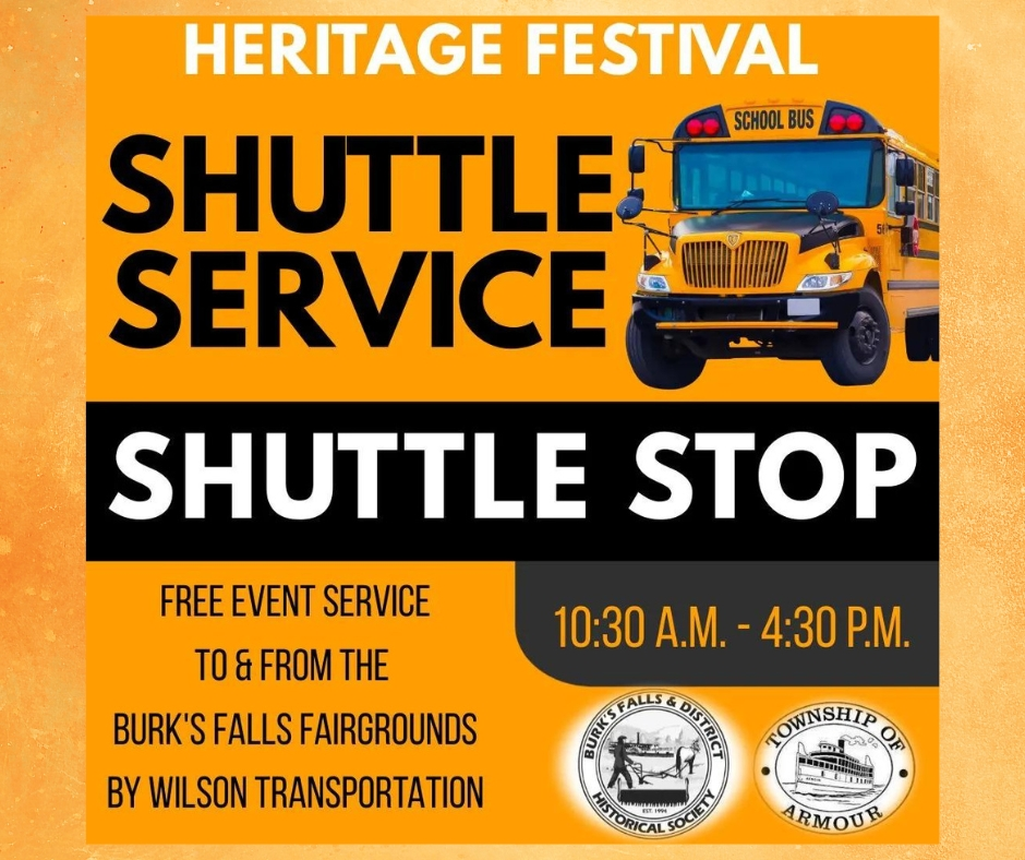 The countdown is on to this year’s Burk’s Falls & District Historical Society’s Heritage Festival. The annual celebration is being held on Saturday July 13th from 11 AM – 4 PM, and the Burk’s Falls Legion will host a pancake breakfast beginning at 8:30 AM.