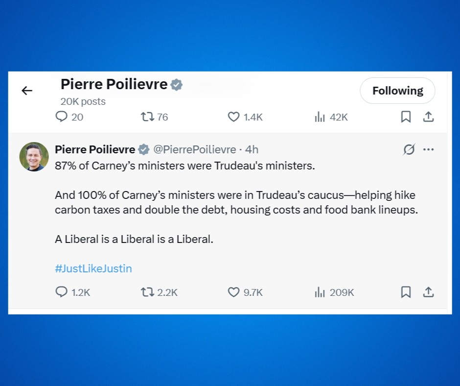 It didn’t take long for Piere Poilievre to fire back. In a news conference this afternoon after the swearing in ceremony, he took aim at the new cabinet, calling it ‘the same Liberal gang’. Earlier in the day he posted to social media: