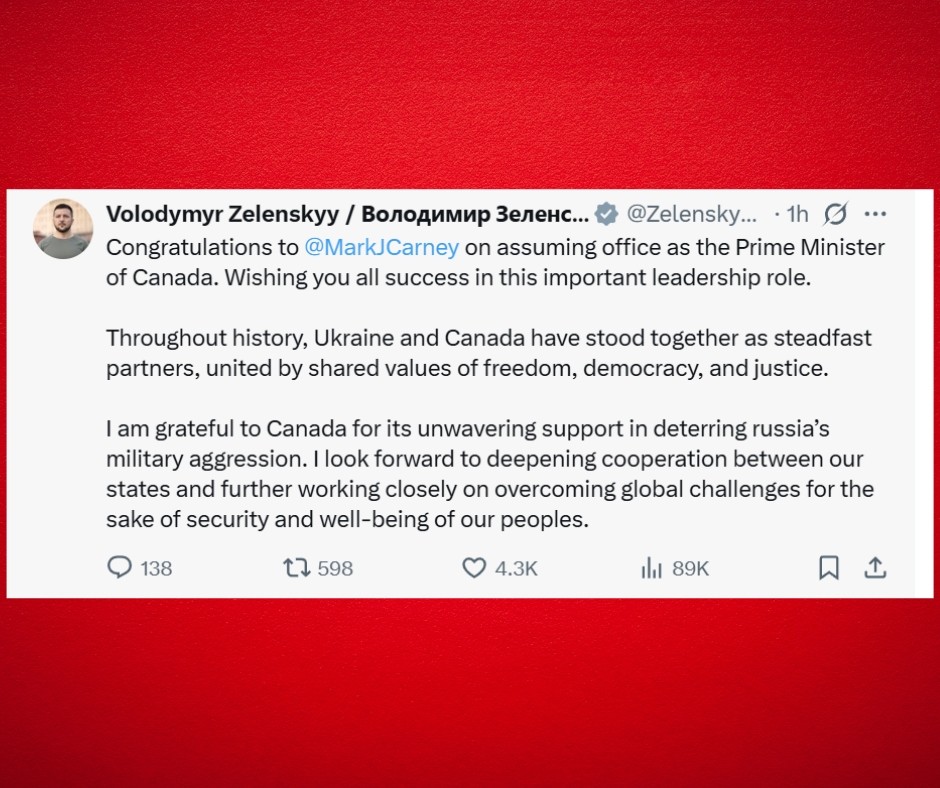 Leaders around the globe congratulated Mark Carney when he was elected leader of the Liberal Party last week. Today, Ukraine’s President Volodymyr Zelenskyy wished him well and once again thanked Canada for its support in the war against Russia.