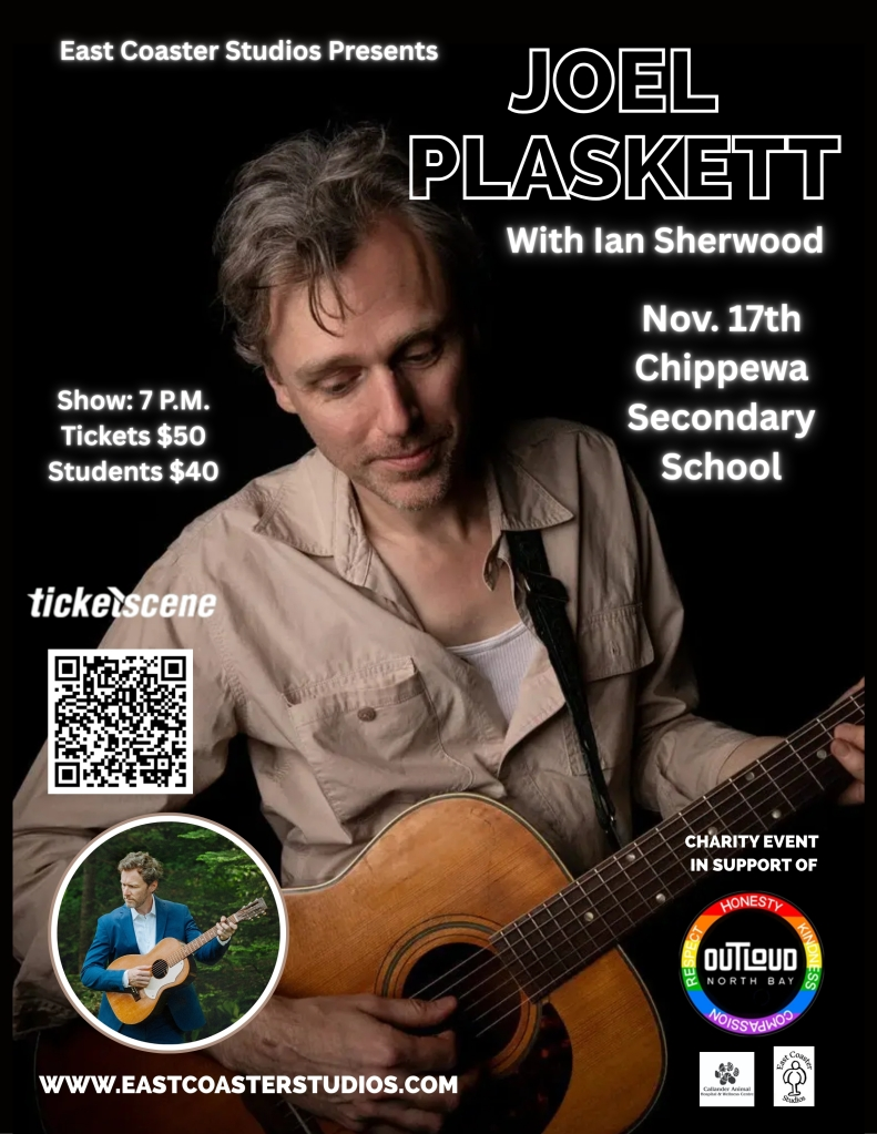 A great event is coming up for one of our favourite organizations. On Monday November 17th at Chippewa Secondary School in North Bay, legendary Nova Scotia singer-songwriter Joel Plaskett will perform with special guest Ian Sherwood. All proceeds go to support OUTLoud North Bay.