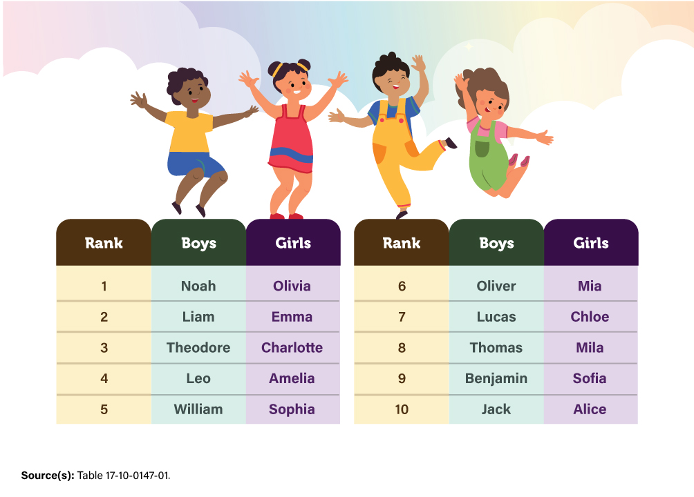 The results match an October 2024 report from Statistics Canada’s about the most popular names of 2023.