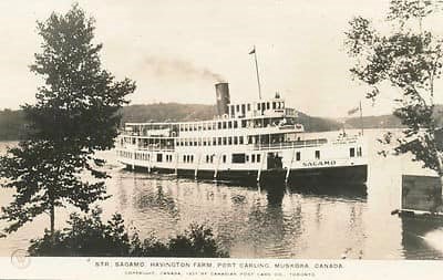) historical photo mosaic was unveiled. The mural comprises 9,028 pictures that “together create an image of the RMS Sagamo passing through the locks.” The RMS Sagamo was one of the largest ships of the Muskoka Lakes Navigation Company and was built in 1906 and sailed until 1958.