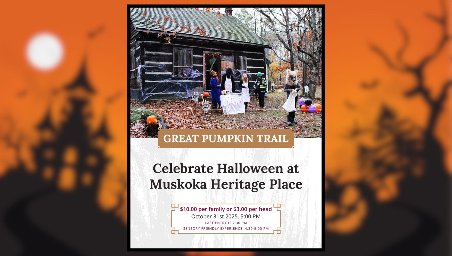 Head to Muskoka Heritage Place on Halloween for The Great Pumpkin Trail. And pick up Muskoka’s Most Haunted and Muskoka’s Most Haunted 2 on Amazon and at local book stores. Great reads!